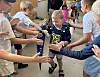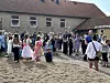 Beim Gang durch das Spalier zogen manche Kinder es vor, Mama oder Papa an die Hand zu nehmen.