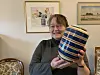Renate Weber-Ehlers mit der Vase und hinter ihr das Aquarell von Peter Sandkamm-Möller