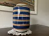 Die gestreifte Keramikvase wurde bei der 1948 gegründeten Werkstatt Grimstrup Keramik in Næstved hergestellt. Diese Fabrik gründeten Aksel F. Petersen – der alte Petersen – und Christian Hansen, die beide vorher bei in der Keramik-Werkstatt Kähler in Næstved gearbeitet hatten. Große Vasen waren die Spezialität bei Grimstrup. Die alte Werkstatt wurde am 15. März 1970 geschlossen.