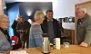 Die Vorsitzende Christa Lorenzen (2. v. l.) begrüßt die Teilnehmenden im Foyer des Kinos. In der Pause stärkte man sich an Kaffee und Kuchen.