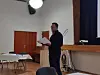 Wenige Sekunden, bevor sein Tätigkeitsbericht gefragt war, betrat er die Aula. Er hatte die parallel stattfindende Orchesterprobe im Gemeinschaftsraum zum richtigen Zeitpunkt verlassen.