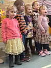 Die Kindergartenkinder beim Singen. Einige blieben lieber bei ihren Großeltern, als nach vorn zu kommen.