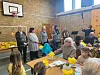 Und während die Brötchen in den großen Körben zusehends weniger wurden, brachte die Leiterin der Schulfreizeitordnung, Sandra Rehse, gegen Ende der Veranstaltung für die Kinder einen Korb voller Schokoladen-Ostereier herein, die der Osterhase auf dem Schulhof abgesetzt hatte.