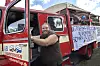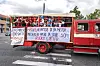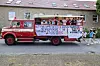 In einem ausgebauten und mit Bannern behängten Feuerwehrwagen besucht die 3B am Freitag die Elternhäuser einiger Schulabgängerinnen und Schulabgänger, und feiert während der Fahrt dorthin mit lauter Musik auf den Straßen Nordschleswigs.