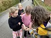 Die Mädchen lassen sich von Marion Köstlin markieren, dass sie eine Runde gelaufen sind.