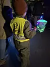 Nicht nur die Laterne leuchtete, sondern auch die Warnweste trug zur Sichtbarkeit bei.