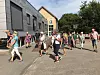 Es ging in Regie von Grella auch an der früheren Mädchenschule – der Alexandrinen-Schule –, der jetzigen Polizeiwache vorbei. Vor der Lokalredaktion des „Nordschleswigers“ gab es zusätzlich zu den Infos vom Chefredakteur in der Sommerhitze auch Wasser für die interessierte Truppe.