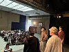 Und dann öffnet sich der Vorhang für Ali Baba und seine vier Räuber: Schnell noch das Bühnenbild umbauen, das machen die Kinder mit Unterstützung der Lehrer selbst. Noch eine Ansprache eines Schülers an das Publikum - in dem vor allem Großeltern, aber auch andere Verwandtschaft sitzen, und los geht's.