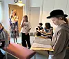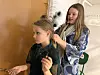 Eine Mitschülerin hilft Liva, die Pfauenfedern in ihrem Zopf festzustecken.