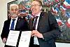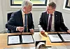 Hinrich Jürgensen und Daniel Günther bei der Vertragsunterzeichnung in Kiel.