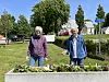 Tilly Jannsen (l.) und Ketty Atzen hegen und pflegen die Blumen in den großen Betonkübeln im Marschenort.