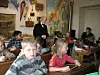 Auch dafür ist Peter Blume zu haben: Schulmeister bei einer kleinen Unterrichtseinheit im Schulmuseum.
