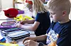 Gebündelte Konzentration beim Malen und dem Auspacken von Süßigkeiten