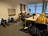 Er hat in den ersten beiden Tagen einen Erste-Hilfe-Kurs angeboten und jetzt programmiert er gemeinsam mit Schülerinnen und Schülern der vierten bis sechsten Klasse ein Spiel.