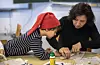 Adam mit seiner roten Mütze und Mutter Sandra beim Falten der Engel.
