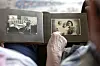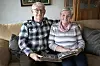 Heinz Jespersen und seine Schwester Frauke Sørensen blättern alte Familienfotos aus der Schulzeit durch.