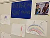 An einer Pinnwand im Saal hingen Eigenillustrationen für die Königin, an einer anderen selbst gemalte Bilder für den kommenden König Frederik und seine Frau Mary.