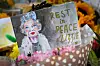 Eine Trauerbekundung steckt zwischen Blumen nahe dem Buckingham-Palast.