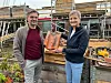 Das Eindecken mit den alten Ziegeln war für alle Beteiligten eine neue Erfahrung: Handwerksunternehmer Arne Frederiksen mit Dorte Radik von der kommunalen Abteilung für Gebäudebetrieb halten einen alten Dachziegel, der wiederverwertet wird.