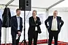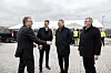 Minister Morten Bødskov bei der Ankunft in Glansager. Er wurde von Ole Hvelplund, Nature Engergy, Jesper Hjulmand, Andel, und Bürgermeister Erik Lauritzen begrüßt.