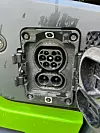 Statt Tankloch hat der Lkw diese Stromsteckdose, hierüber werden die Batterien aufgeladen.