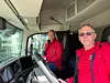 Thomas Stelzner (l.) und Claus Hansen wechseln sich am Steuer des E-Lastwagens ab und fahren in drei Etappen nach Frankreich.
