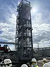 Im Außenbereich verlaufen kilometerlang Rohre. Noch sind Gebäude und Produktionsanlagen eingerüstet.
