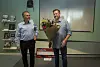 Jesper Koch (r.) erhielt von Peer Heitmann Madsen auch einen Blumenstrauß anlässlich der Überreichung des „Rødekro Kulturpris“.