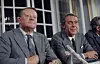 Zufriedene Gesichter: Staatsminister Jens Otto Krag und Erik Ninn Hansen bei der TV-Nachlese zum dänischen Ja zu Europa.Foto: Christen Hansen/Ritzau Scanpix