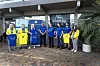 Die neuen Trikots haben vor Ort den Praxistest bestanden. Zu sehen sind Elena Deiß (links), Stina Sørensen und Stephan Gottschalk.