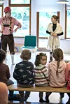 In einer ganz einfach aufgebauten Bühne gingen die zwei Schauspieler und der Musikant sehr interaktiv zu Werke. Die Kinder wurden immer wieder in die Ereignisse einbezogen. „Es ist richtig nett“, versichert Marion Petersen.