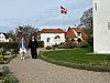 Siri B. Hansen und Pastor Carsten Pfeiffer nähern sich der Kirche.
