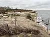 Überall an der Küste der Kommune Sonderburg hat die Sturmflut Land weggespült und bestehende Infrastruktur zerstört, so wie hier in der Nähe der Marina Mommark.