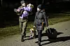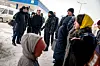 Ein Angehöriger der polnischen Heimwehr hilft einer Familie, nachdem sie in der Nacht von Dienstag auf Mittwoch in der Kälte am Grenzübergang Medyka in Ostpolen an der Grenze zur Ukraine gestanden hat.