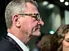 Henrik Frandsen applaudiert bei der ersten Hochrechnung.
