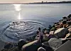 Am Abend vor der entscheidenden Ausschusssitzung im Oktober hatte sie über die sozialen Medien verkündet, dass sie am nächsten Morgen um 9 Uhr einen Selbstversuch durchführen würde. Sie forderte in diesem Post ihre Ausschusskolleginnen und -kollegen auf, sie zu begleiten. Dass sie nicht kamen, nimmt sie ihnen nicht übel. Ihre Idee entstand schließlich auch sehr spontan. „Dagegen waren mehrere Mitglieder des Wikingerklubs vor Ort. Und das war auch gut so“, stellt Signe Bekker Dhiman lachend fest. Um von der Mole ins Wasser zu gelangen, musste sie über große Steine klettern. „Wie eine Bergziege“, erinnert sie sich.