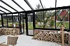 Im Garten des Fjordbo gibt es einen modernen Wintergarten.