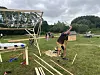Um regensicher arbeiten zu können, baute Familienvater Mikkel Sletø Enevoldsen am Montag ein temporäres Arbeitszelt für seine Familienmitglieder. Das eigentliche Bauprojekt am Montag war, Hindernisse für den Steckenpferdparcours zu bauen.
