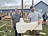 Christian Guldbrandt aus Sonderburg (l.) und Kristian Grove von Fünen bauen einen Prototyp für eine neue Tramp-Station, die nach Fertigstellung auf Fünen stehen soll.