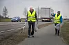 Anne Marie und Torben Klyhn beim Einsammeln von Abfall an der Straße bei Guderup