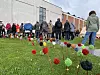 „Das habt ihr schön gemacht, mit den vielen Blumen“, sagt Marina Storm. Marianne Rosalie Kalb, Vorsitzende des Strickfestivals, begrüßt sie wenige Minuten nach der Eröffnung von „Masker i Marsken“ vor der ehemaligen Teppichfabrik „Væveriet“ in Hoyer, während sich die Strickblumen auf dem grünen Rasen im Wind bewegen.