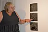 Museumsleiterin Kirsten Moesgaard macht auf ein Detail in dem Relief von Bildhauerin Laila Westergaard aufmerksam.