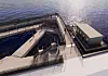 Das Sonderburger Hafenbad, die Illustration zeigt rechts den geplanten Anbau auf dem Wasser.