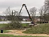 Wer am Dienstag durch den Schlosspark zum Strand spazieren möchte, muss einen anderen Weg einschlagen. Teile des Parks sind mit rot-weißen Absperrbändern versehen Dort werden mithilfe eines hohen Krans sieben große Bäume gefällt.