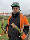 Frank Panzenhagen mit einem der Äste: „Der war ganz morsch. Die fallen ja plötzlich runter und können Menschen verletzen."