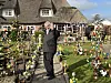 Egon Hagensen winkt in seinem auf Ostern getrimmten Garten vielen Zaungästen zu.