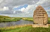Die Reisby Au mit dem Gedenkstein im Vordergrund