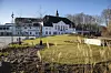 Folkehjem, Haderslevvej 7. Errichtet 1909-1911 nach Zeichnungen des dänischen Architekten Johs. Magdahl Nielsen unter der Bauaufsicht des lokalen Jep Fink. Gebaut „wie eine grundtvigsche Burg mit einem von kräftigen Granitsäulen flankierten Eingangsbereich und einer Galerie darüber, geeignet als Plattform für Volksredner“, (Dragsbo, S. 54).