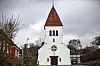 Panorama mit der Sankt-Jürgens-Kirche, Kirkebakken 2. Errichtet 1903-04 in romanischem Stil. Als Vorbild galt die dänische Kirchenarchitektur jener Zeit.