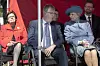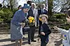 Royaler Haarschmuck: Blumenmädchen Merida von der Förde-Schule überreichte Prinzessin Benedikte einen Blumenstrauß. Die Prinzessin nahm einen abgefallenen Blütenkopf und steckte ihn der Schülerin ins Haar.